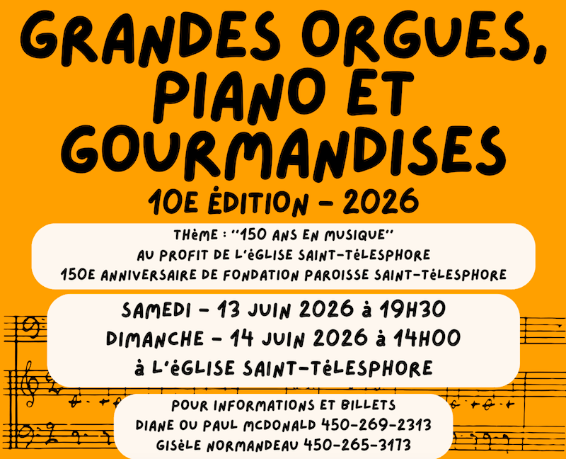 sdst2026-04-13T08:43:04-04:00Cécile & Richmond seront de retour le 25 avril prochain pour le souper de l’Âge d’Or. Le Club de l’Âge d’Or vous attend en grand nombre dès 18h00 au centre communautaire Rémi-Sauvé. Pour réservations : Madame Carole Lauzon au 450-269-2059.